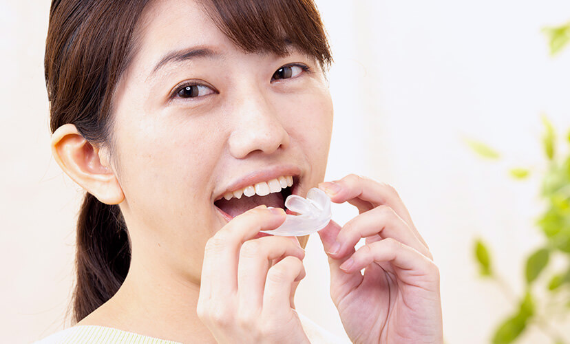 マウスピースは透明なプラスティック素材なので金属アレルギーの方でも問題なく装着できます。